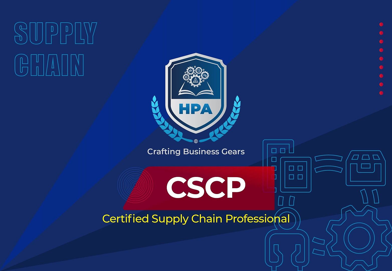 CSCP – Certified Supply Chain Professional is designing , planning, execution, control, and monitoring of supply chain activities with the objective of creating added value, building a competitive infrastructure, leveraging worldwide logistics, synchronizing supply with demand and measuring performance globally.